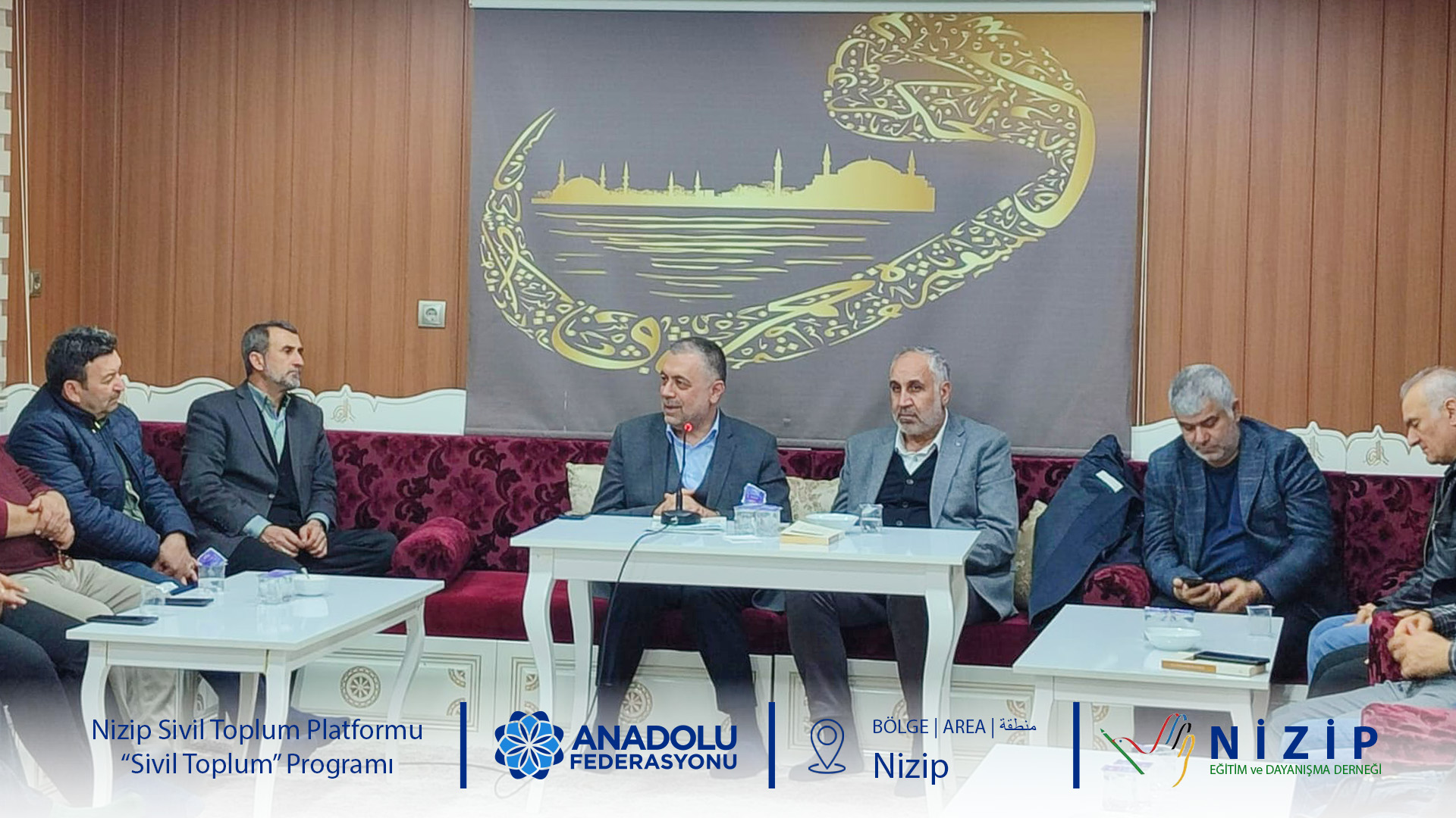 Nizip Eğitim ve Dayanışma Derneği’nin (NEDDER) paydaşı olduğu Nizip Sivil Toplum Platformu, Anadolu Federasyonu Yönetim Kurulu Başkanı Turgay Aldemir’in katılımı ile “Sivil Toplum” konulu bir program düzenledi.